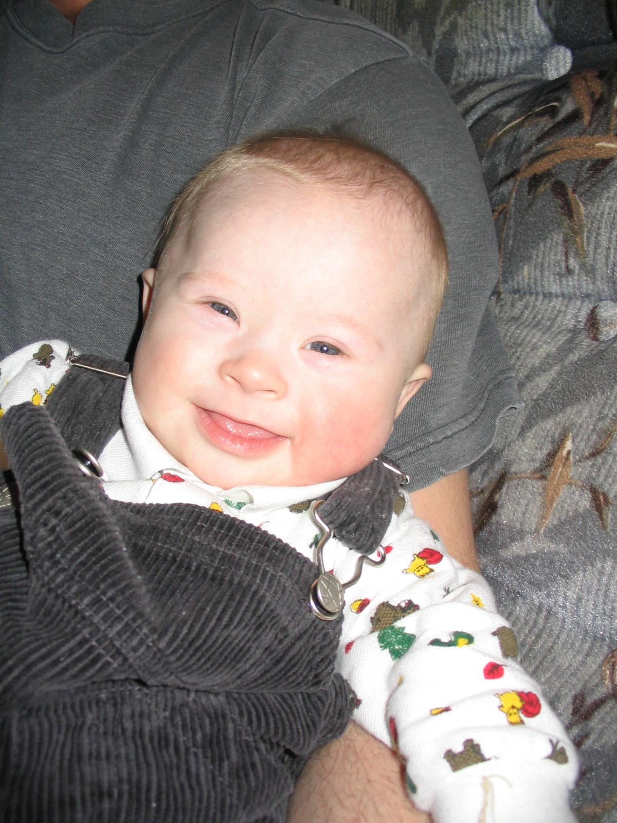 We just don’t know, at an early age, in exactly which ways Down syndrome may affect a child. She may be really good at cognitive activities, but have significant delays in movement… thereby falling behind her peers in playground and paper-and-pencil activities. He may be fairly good at gross motor, excelling in sports. Ocular control may be an area of need, or may be perfect. Language may be good, or may need lots of work. However, one thing we know for certain… babies don’t deal with these things no matter what their chromosomes look like. They lie down and expect to be carried, cuddled, talked to, fed and generally catered to. They learn they are lovable, cute, and the center of the universe. They begin to know who their family members are, and who is the soft touch in the house in the middle of the night.